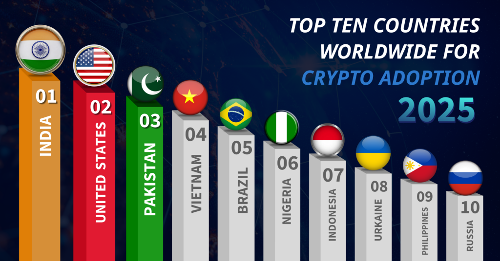 According to the Chainalysis Global Crypto Adoption Index 2025, India ranks #1 worldwide in overall crypto adoption — ahead of the United States, Pakistan, and Vietnam.